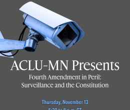 The ACLU of Minnesota is hosting a virtual webinar on surveillance practices and technologies that threaten our civil liberties. This event will provide information on the history of surveillance and how the rapid advancement in technology impacts you and your civil rights.