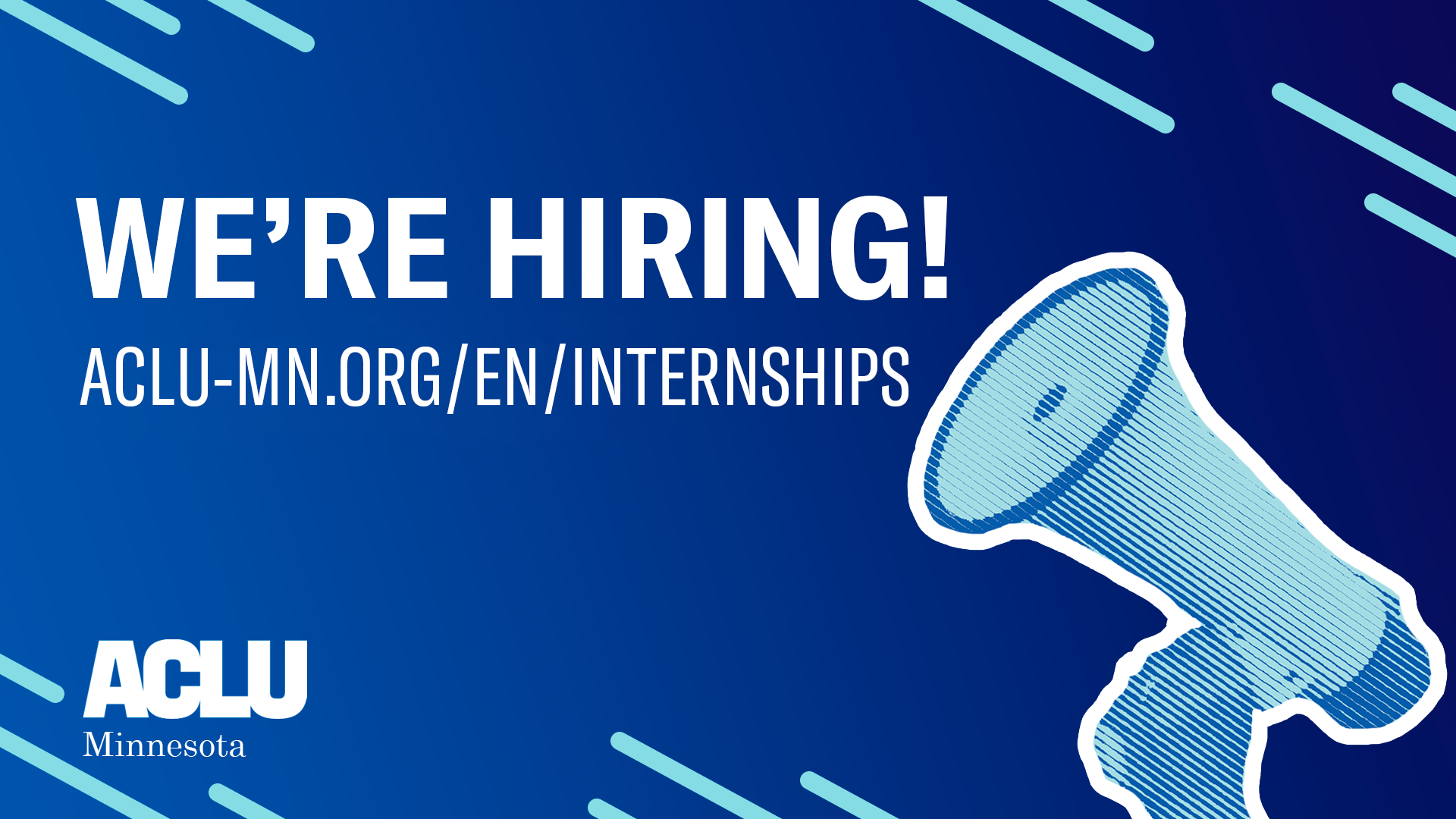 The ACLU of Minnesota's internship program seeks to develop the next generation of leaders who dare to create a more perfect union. Since 1952, ACLU-MN has been the state's premier guardian of liberty, working in the Courts, at the Capitol, and in communities to defend and expand the civil liberties and civil rights of all Minnesotans. We are nonprofit and nonpartisan.