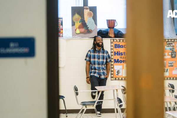 When one walks into his classroom, the first thing they might notice is a colorful poster near the whiteboard with the words “Black History Year” spelled out in block letters. (“Month” had been crossed out and replaced.) Surrounding it are student projects about Nat Turner, Rosa Parks, the Black Panthers, and more.